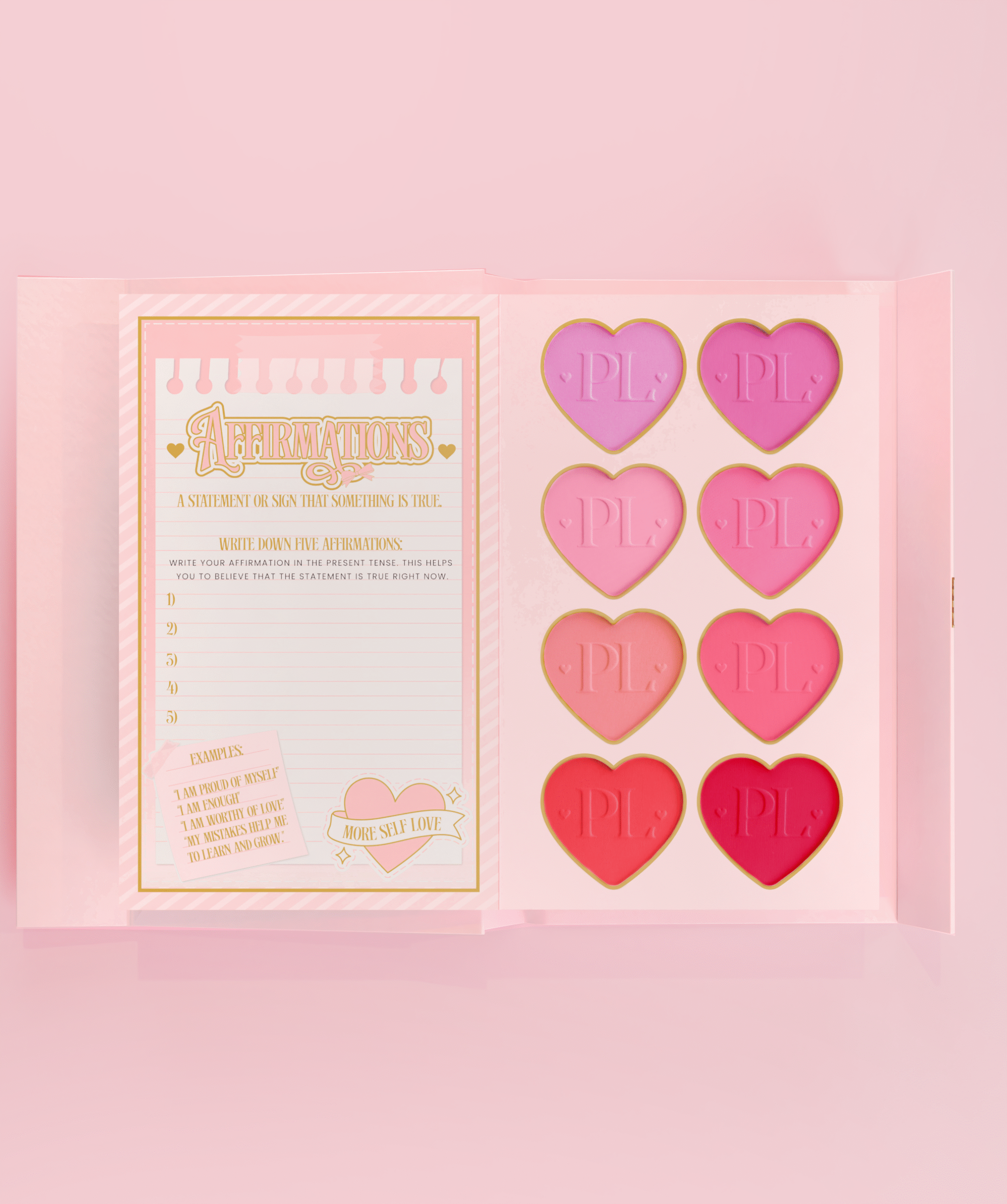 Inspired by our mini dolls and teen queens from the P.Louise Under 16’s Masterclasses, this palette is built straight from their wish list. Our younger babes asked for dreamy pops of P.Louise pinks and lilacs, while the teens begged for natural nudes for soft, wearable glam. We listened, we mixed, and we created – carrying the colour story page by page so every chapter of your makeup look flows seamlessly.